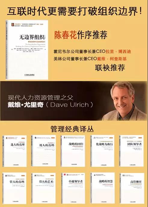 作者简介: 戴维·尤里奇(Dave Ulrich),被誉为人力资源管理的开创者,他最早提出了"人力资源"(human resource,HR)的概念。曾被美国《商业周刊》(2001年)评为“管理学大师”,曾连续当选为“全球管理学十大教授”。他在1997年获得国际人事管理协会颁发的"Warner w.Stockberger成就奖",1998年获得人力资源管理协会颁发的专业知识领导力终身成就卓越奖、国际企业协会和招聘就业管理协会颁发的"终身成就奖",2001年被美国《商业周刊》评为管理教育家的第一名。