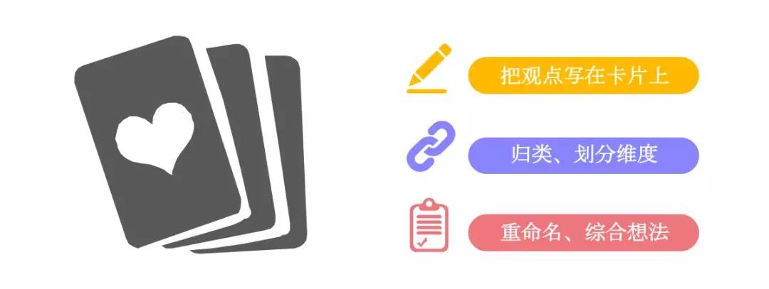 其次是将同类卡片进行归类整理,划分为不同维度;
