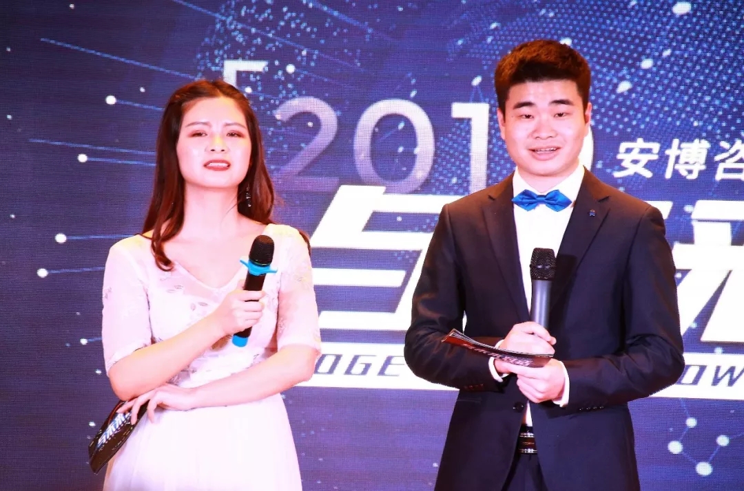 年会开场由安博的金童玉女组成,工作上敬业优秀的他们,主持起来也是从容专业,现场的氛围一度被调到了高潮。