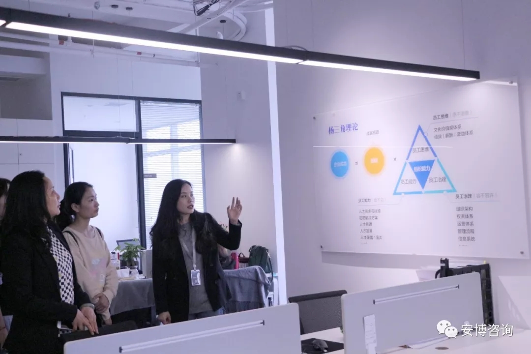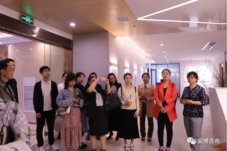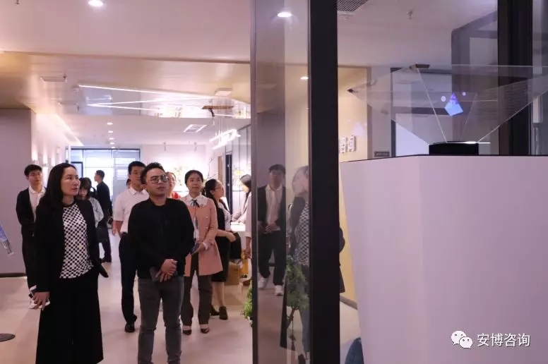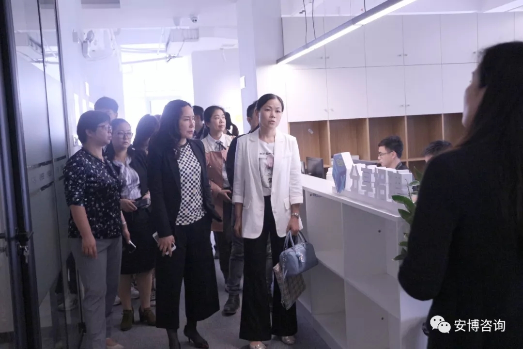 领导们首先参观了安博咨询占地1300平方米的全新办公场地,并视察了公司各个职能部门及其办公区域,同时还在工作人员的介绍下,详细了解了公司的发展历程、产品体系、资质荣誉、经营现状以及发展战略。