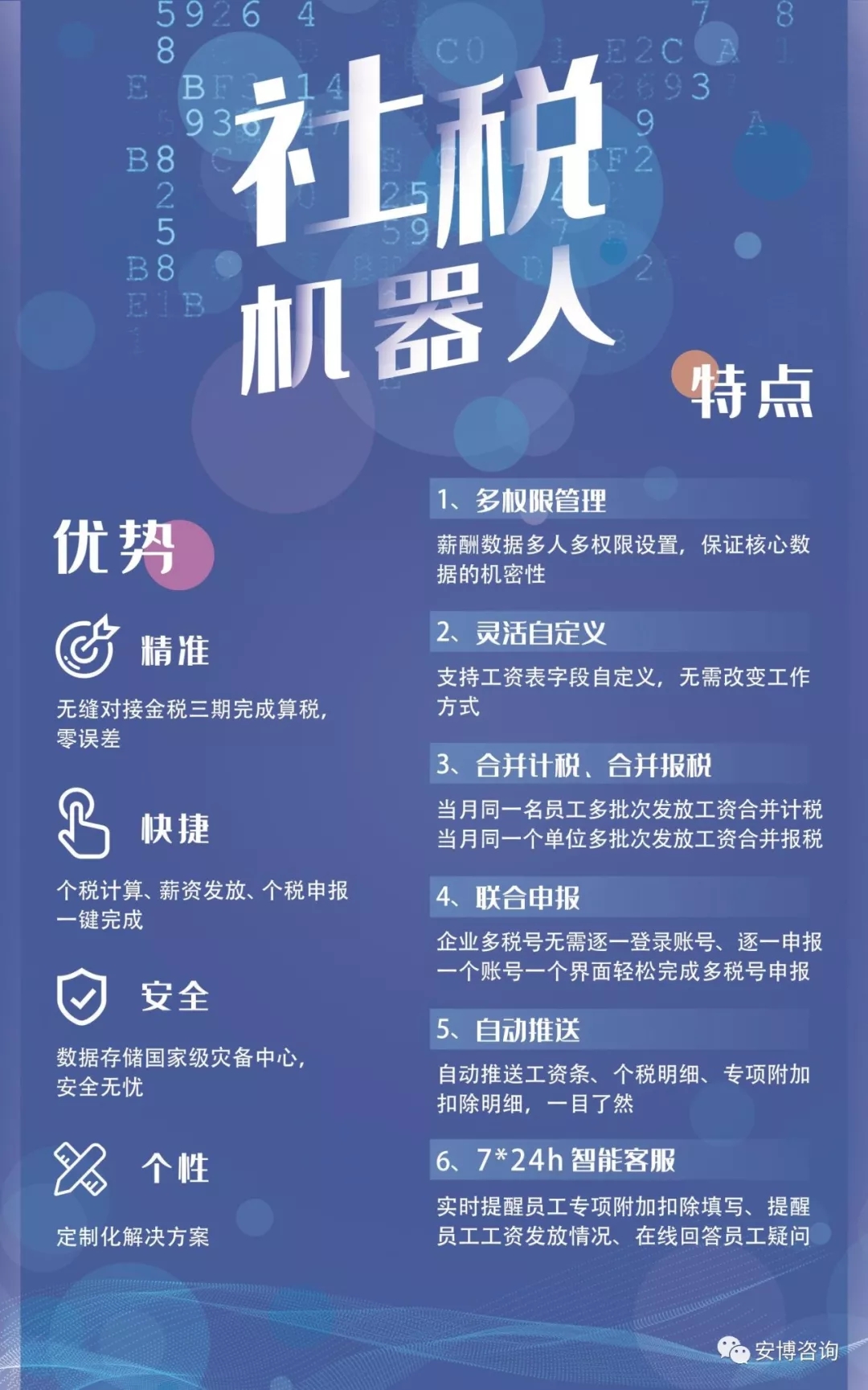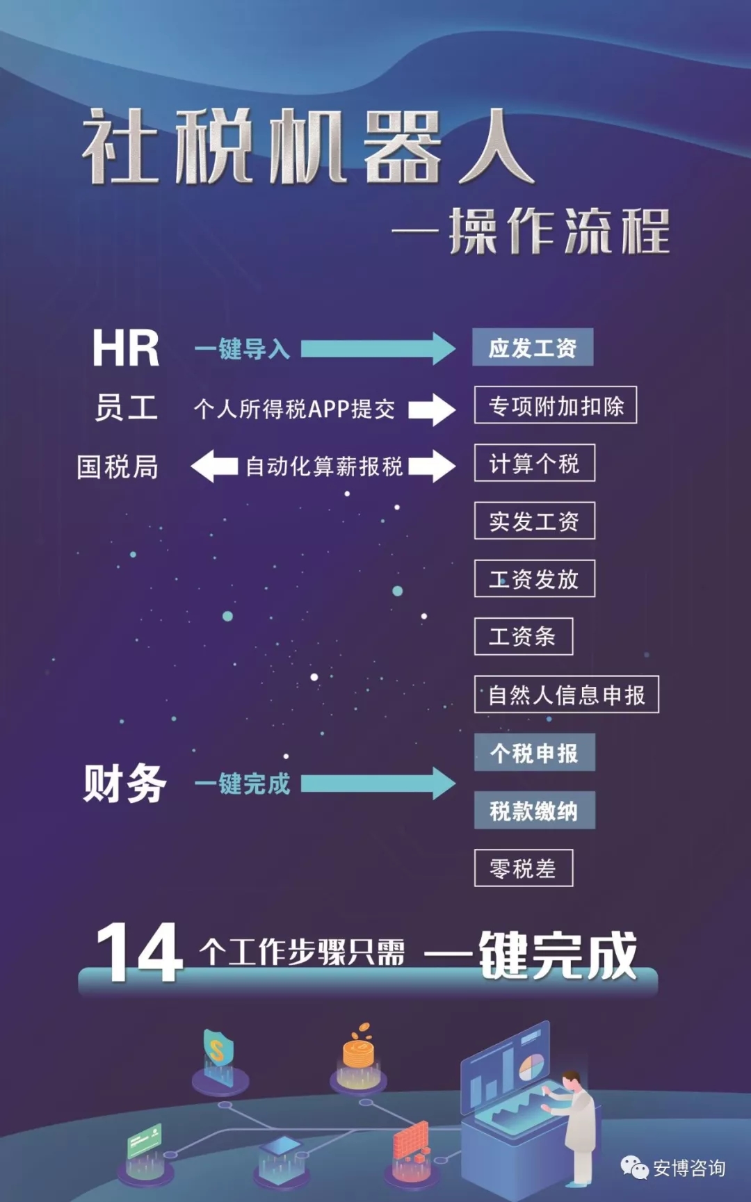 从今年年初到最近,《个人所得税法》,《国务院办公厅关于印发降低社会保险费率综合方案的通知》,湖南省人民政府办公厅关于印发《湖南省降低社会保险费率实施方案》的通知等相继出台,这给企业HR以及财务人员算薪、报税都带来了不小的工作负荷和工作难度。企业现在急需把企业员工信息、HR个税工资表以及税务系统准确无误地联系在一起,还要同时保证简单高效地完成个税申报工作,我们目前推出的一款“安心税”的社税机器人产品就是为了解决当前HR们和财务们的这个燃眉之急。