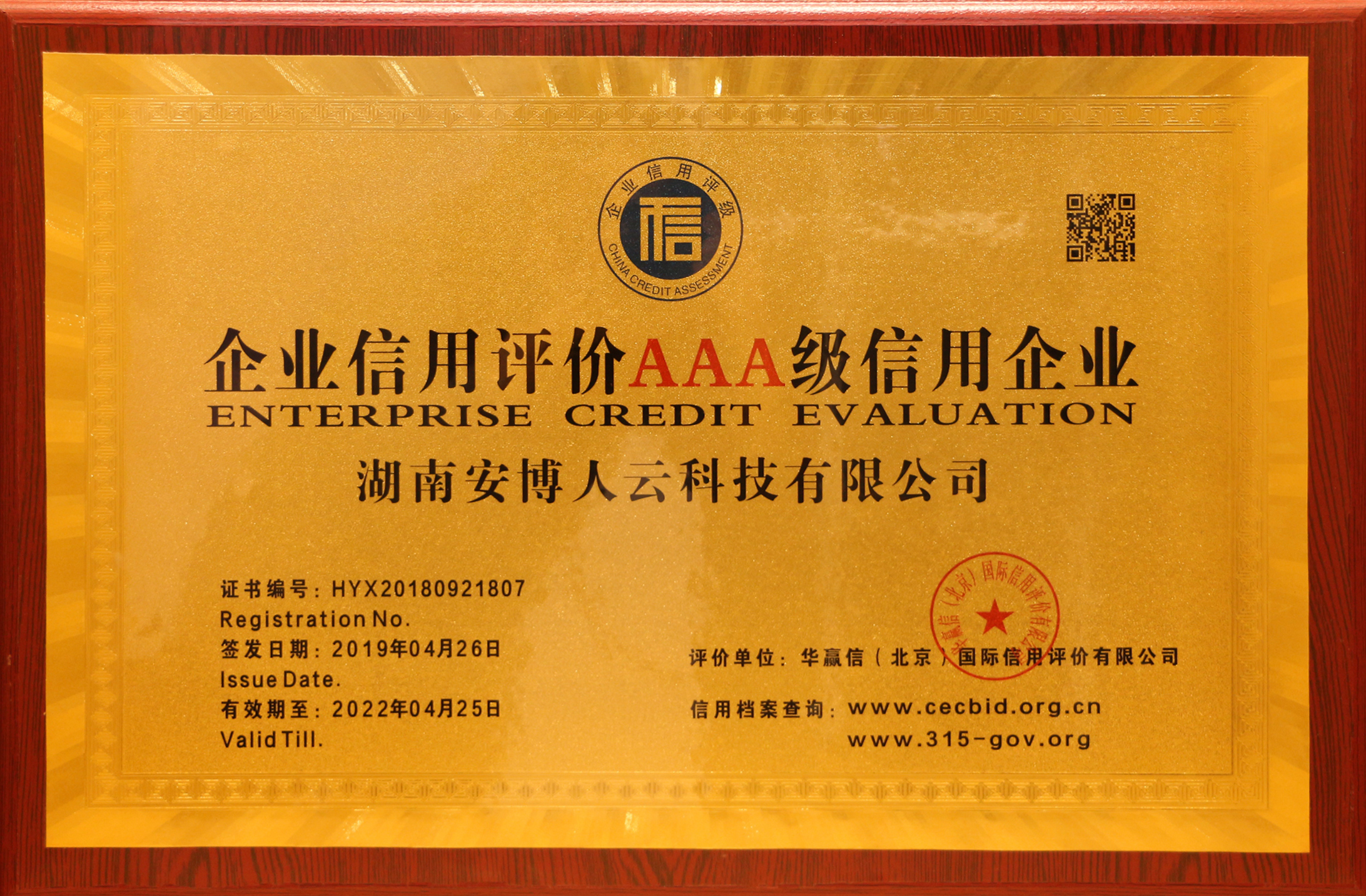 企业信用评价AAA级信用企业
