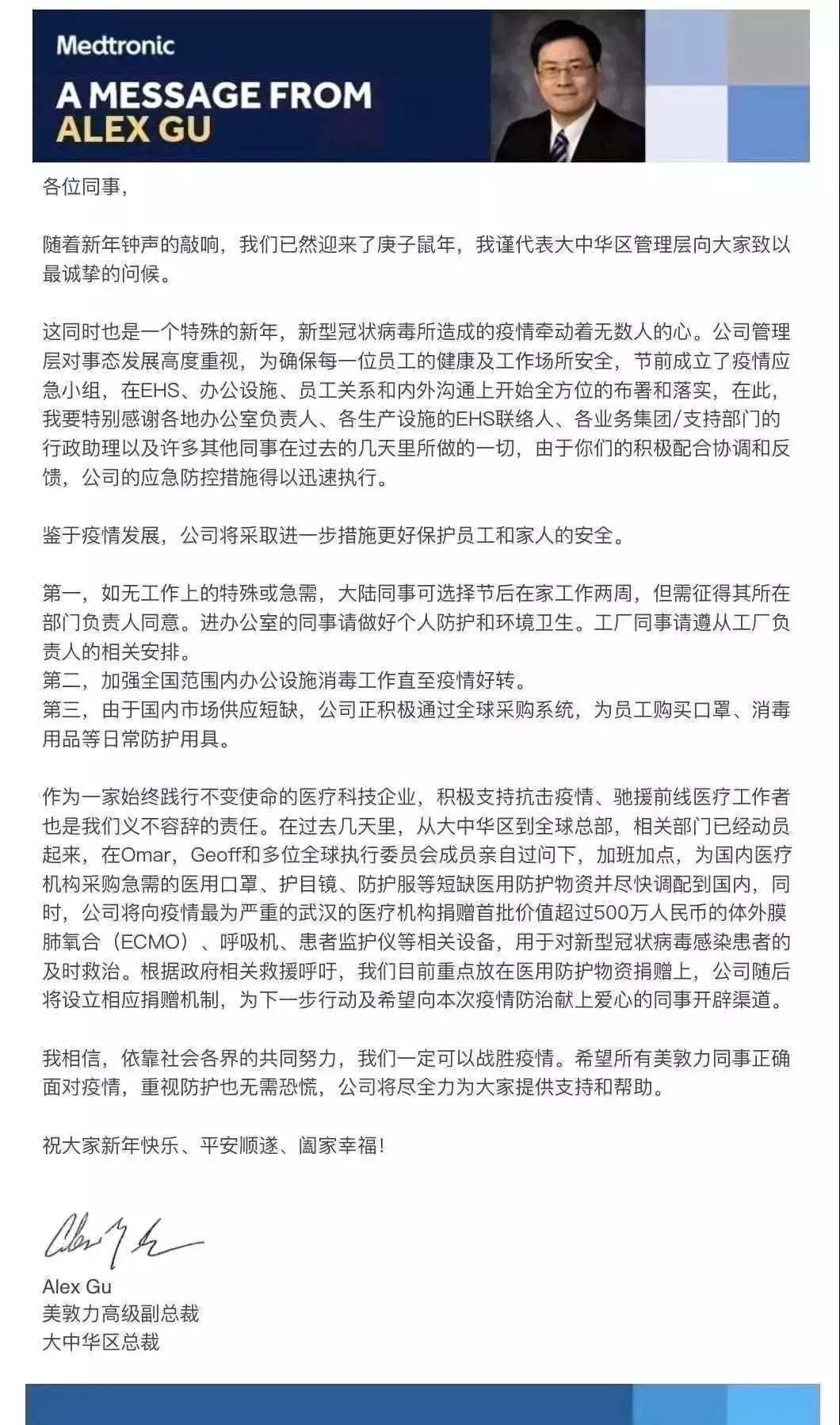 大家新年好!鼠年迎来了一个非常不寻常的开始,对于由新型冠状病毒感染引发的肺炎疫情,我们每个人都保持着高度的关注,疫情牵动看大家的心,相信大家都在积极地响应政府的号召,减少外出,在家休息。正如之前和大家沟通的,公司在第一时间成立了由中国领导团队牵头的跨部门应急小组,积极地根据疫情的发展,部和开展各项工作,保障员工的健康和安全是所有工作的重中之重,公司第一时间向武汉和湖北的同事发放了口罩,同时在全国范围内启动了对于员工健康的实时报备体系,日前,我们正在调集全球的资源,紧急采购口罩,满足大家的需求,确保大家的安全和健康。