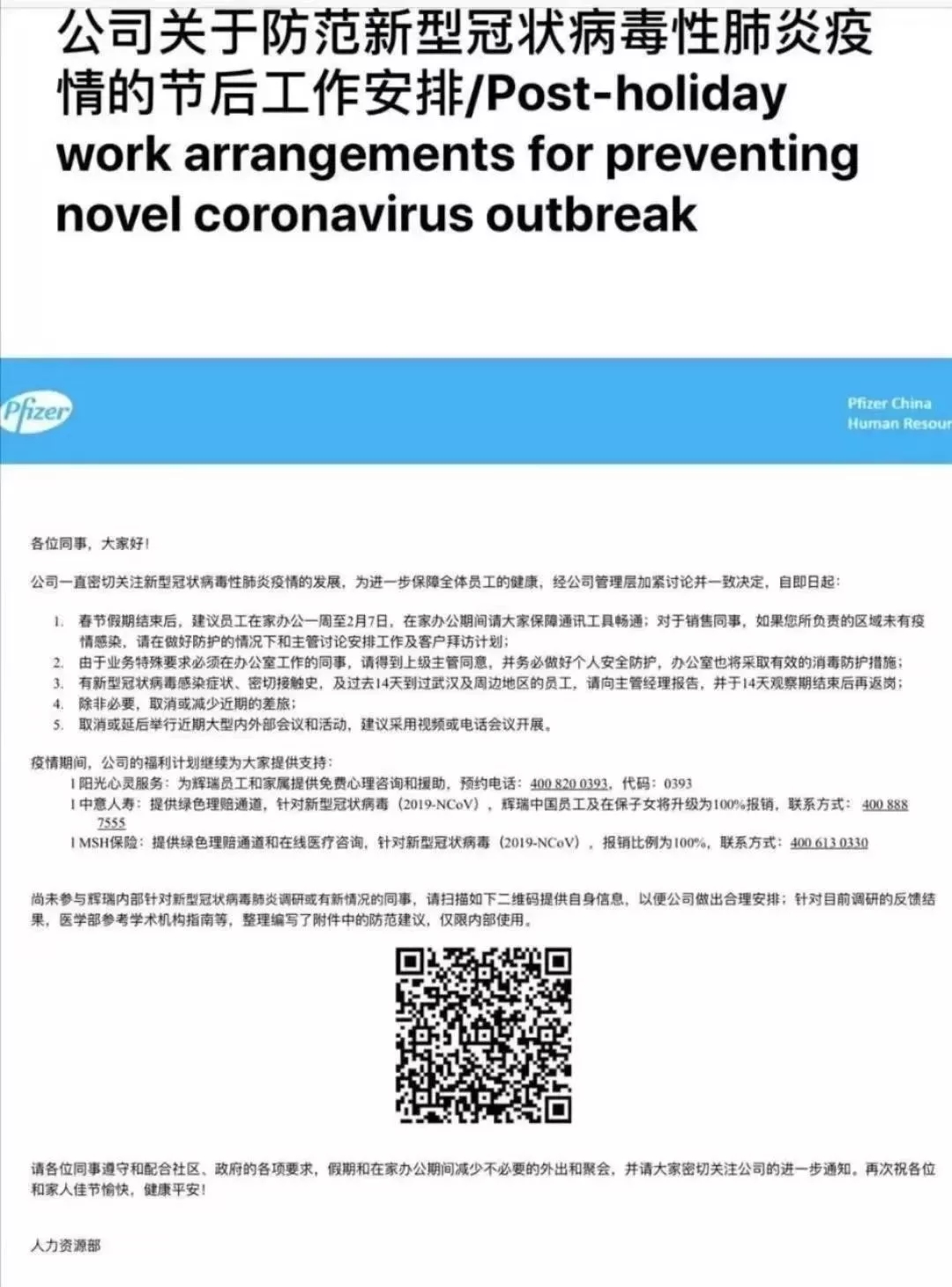 请大家务必保护好自己和家人,如有需要,请与HR,部门秘书或行政中心的同事联系。