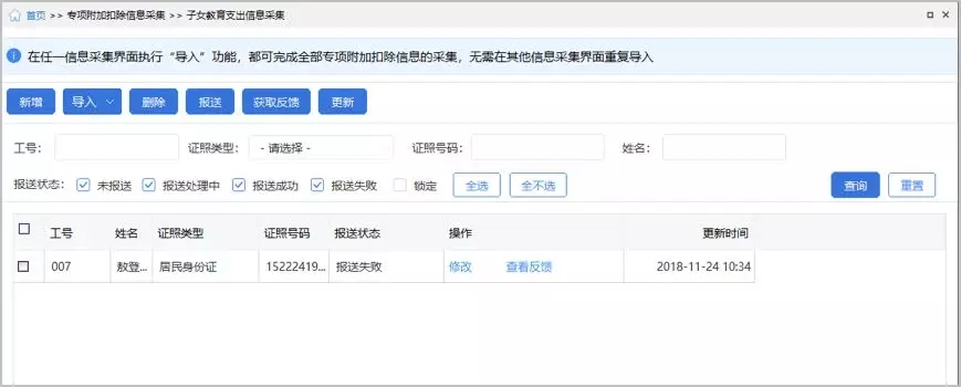 4. 报验成功后,同步员工专项附加信息,获取税局个税计算结果;