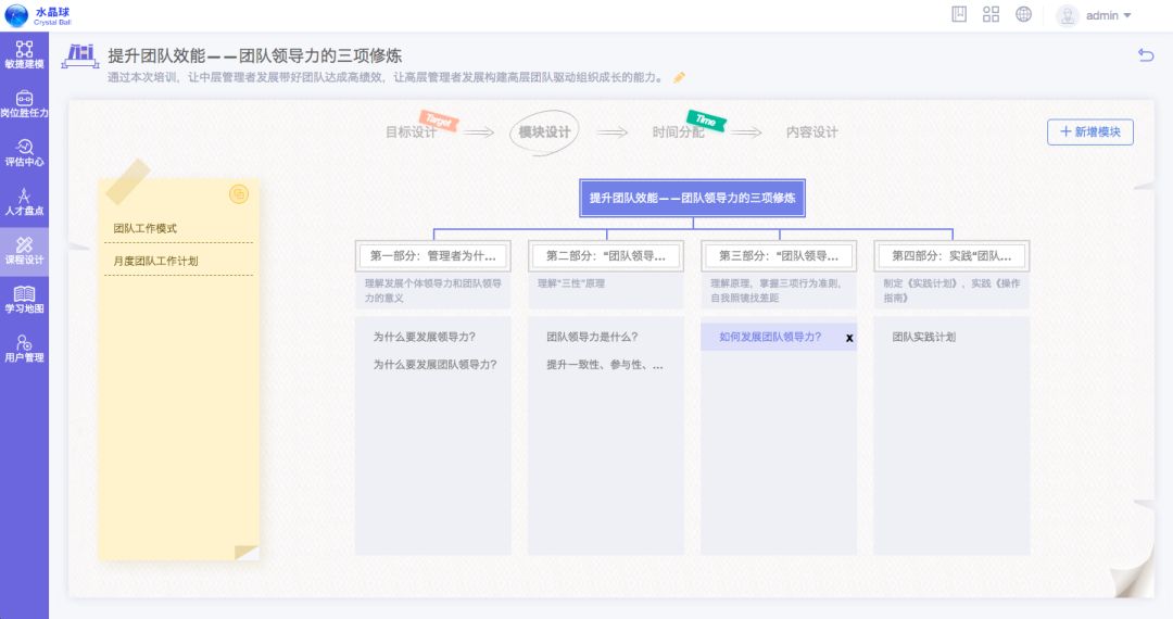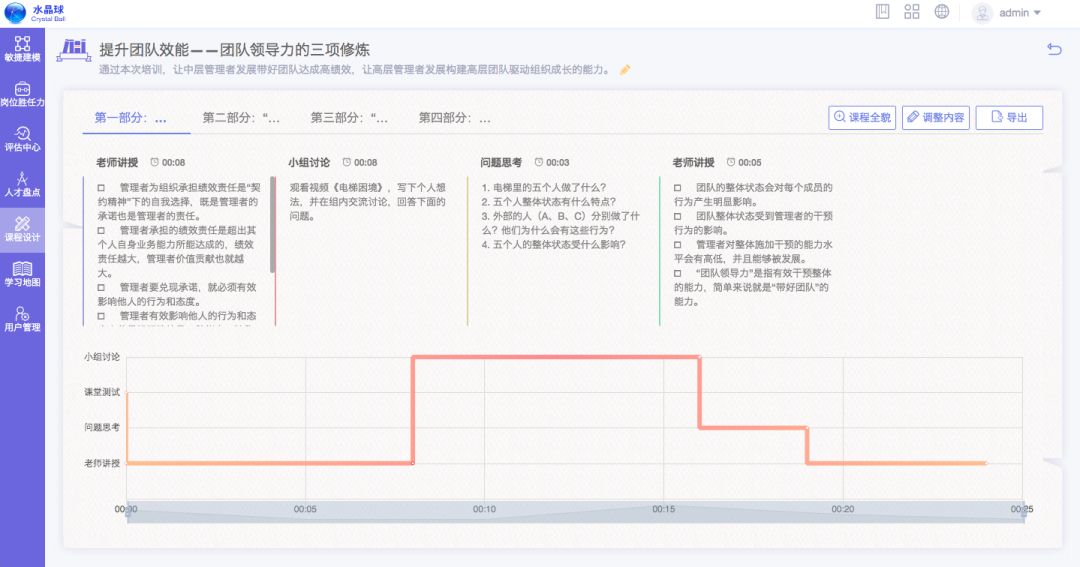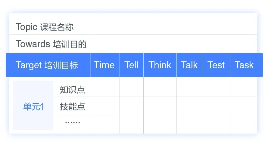 在上述2个阶段、9个T的过程指导下,内训师更易于结构化设计课程,并产出一套有效的教学计划脚本。