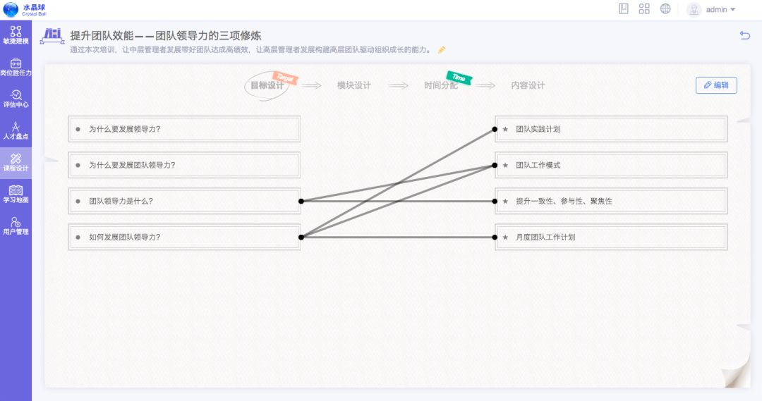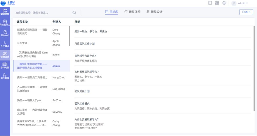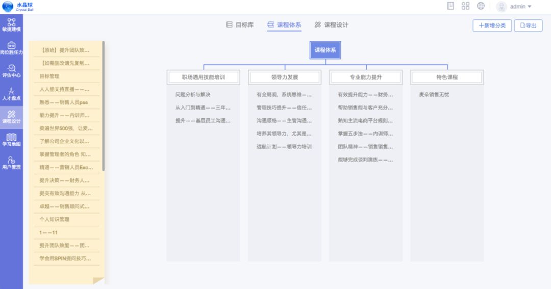 对于培训管理者,也可以通过管理员界面轻松管理所有课程内容,依据课程目标对所有课程进行体系化分类并和维护,从此,企业的内部的课程将不再是孤立的存在,而是通过知识点,技能点之间的关联,形成企业自己的知识与课程体系。