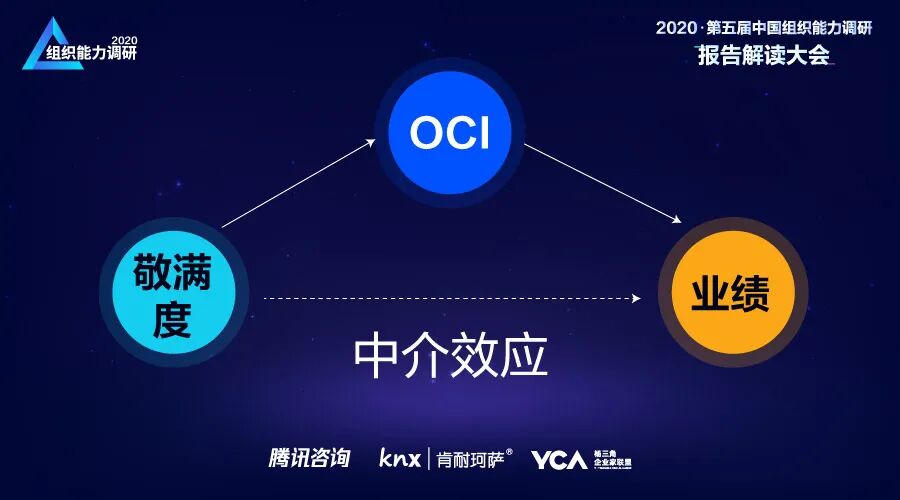 对这个现象,我们又进一步做了细的分析,对“敬满度-组织能力健康度OCI-业绩”的驱动路径进行了探索,三步法验证了“敬满度”的中介效应。得出结论: