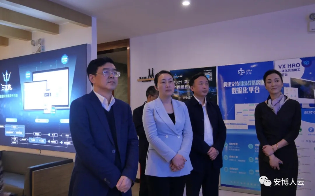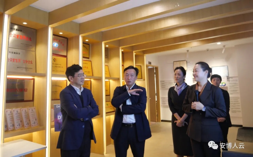 4月23日上午,湖南省委组织部人才办主任谢忠阳来到肯耐珂萨·安博参观视察,长沙市天心区委书记刘汇,长沙市天心区委副书记、区长黄滔陪同视察,肯耐珂萨高级副总裁、安博人云创始人兼总经理谭翊和公司数字化解决方案中心总监廖芮接待了一行领导,并详细介绍了肯耐珂萨·安博的发展历程、业务逻辑、重点产品、核心优势以及发展成果等情况。