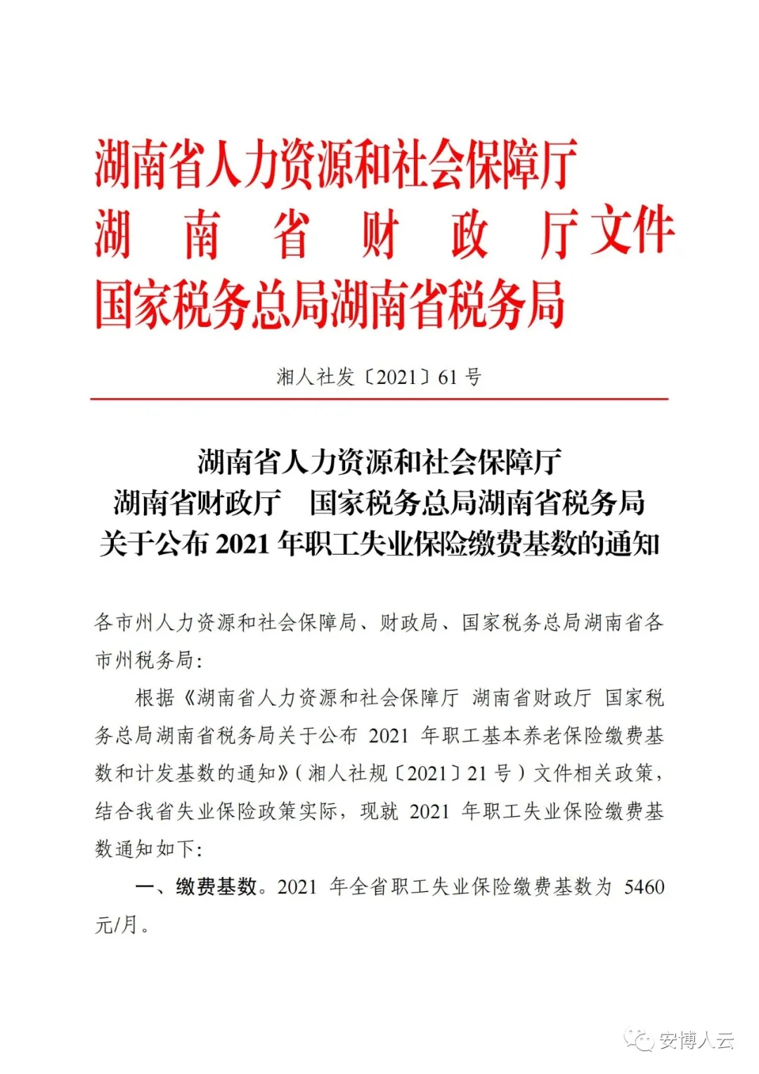 政策 | 湖南省2021年职工失业保险缴费基数上下限公布!