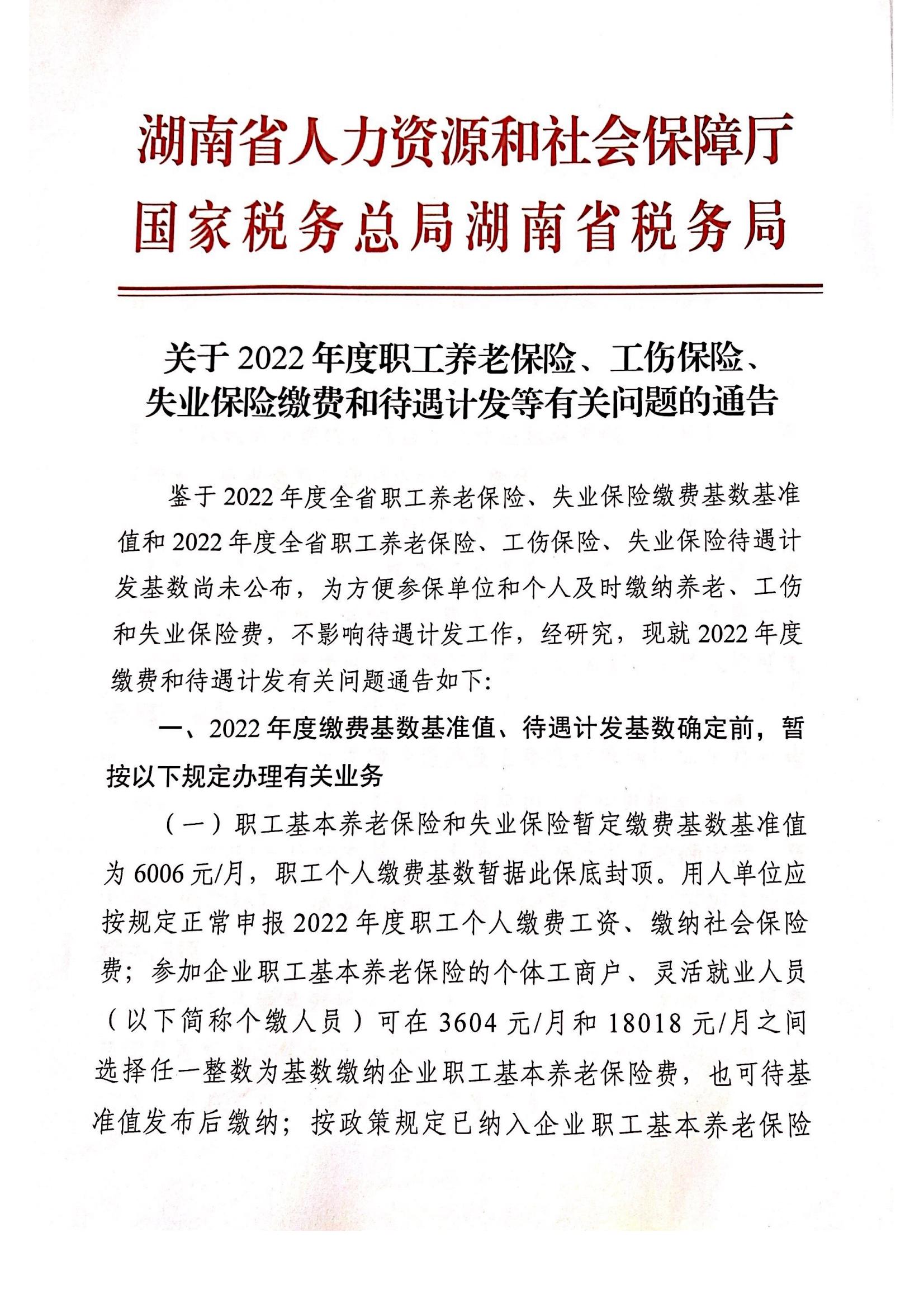 政策 | 关于2022年湖南职工养老保险、工伤保险、失业保险缴费等问题的通知
