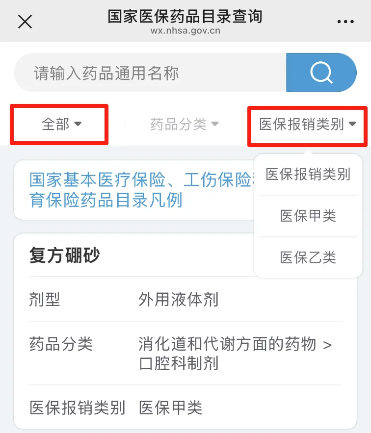 也可以根据自己的需求,选择“医保报销类别”等进行筛选。