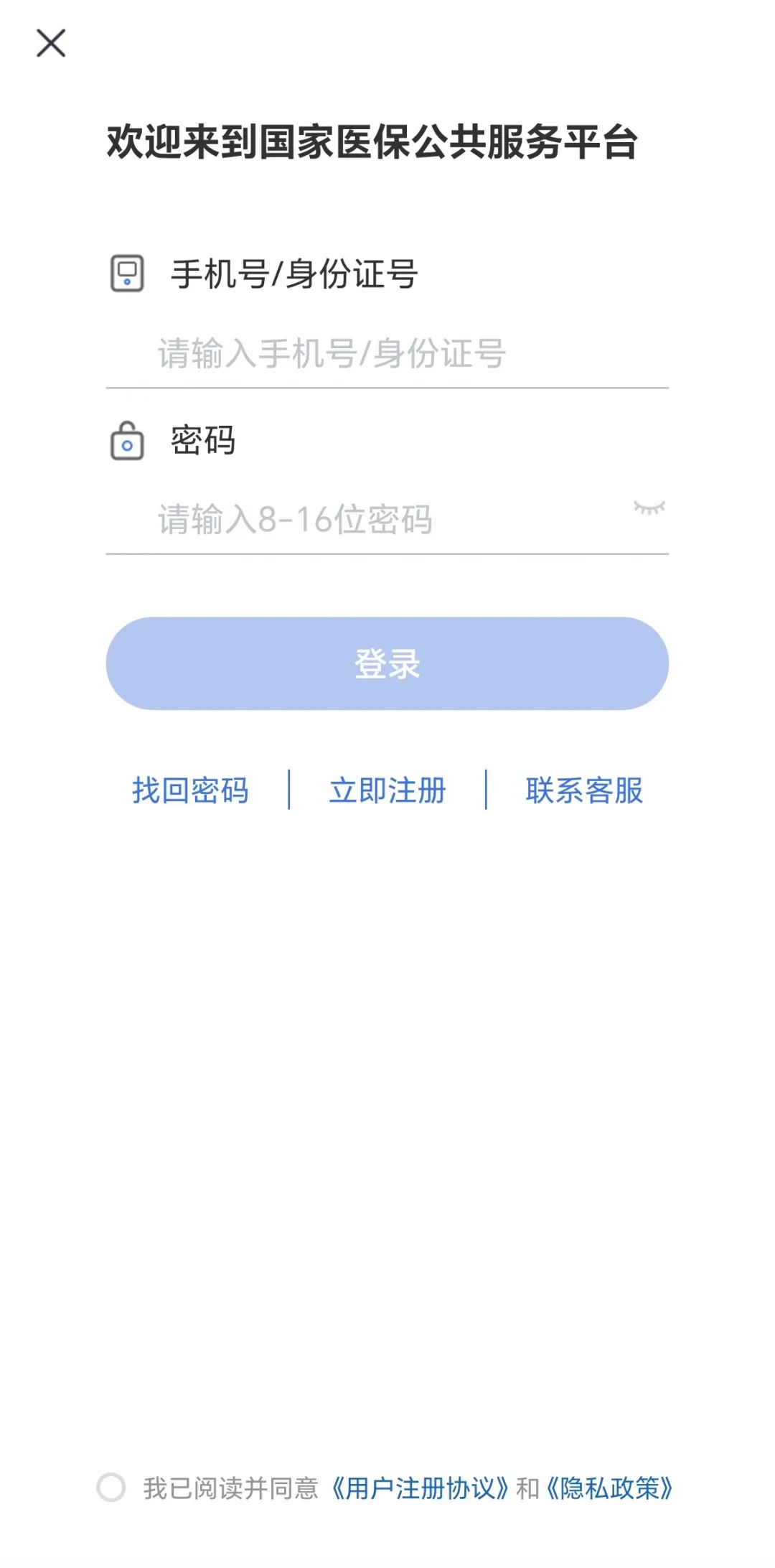 打开国家医保服务APP,若是显示未登录,点击未登录即可登录(如果是首次登录,点击立即注册),若是已登录,忽略此步骤: